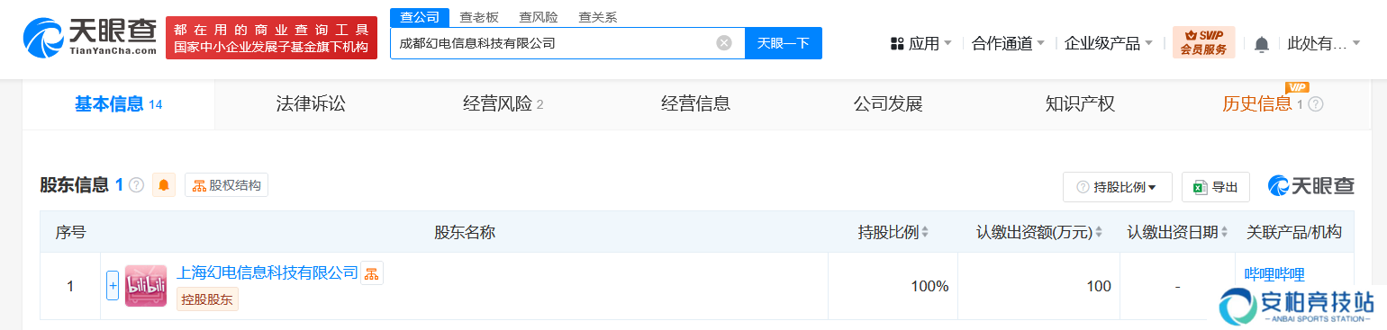 值得注意的是,成都幻电信息科技有限公司的背后有着强大的股东支持。据天眼查进一步揭示,该公司由上海幻电信息科技有限公司全资持股,而后者与知名视频网站B站存在紧密的关联。这一背景无疑为成都幻电信息科技有限公司的未来发展提供了坚实的后盾。