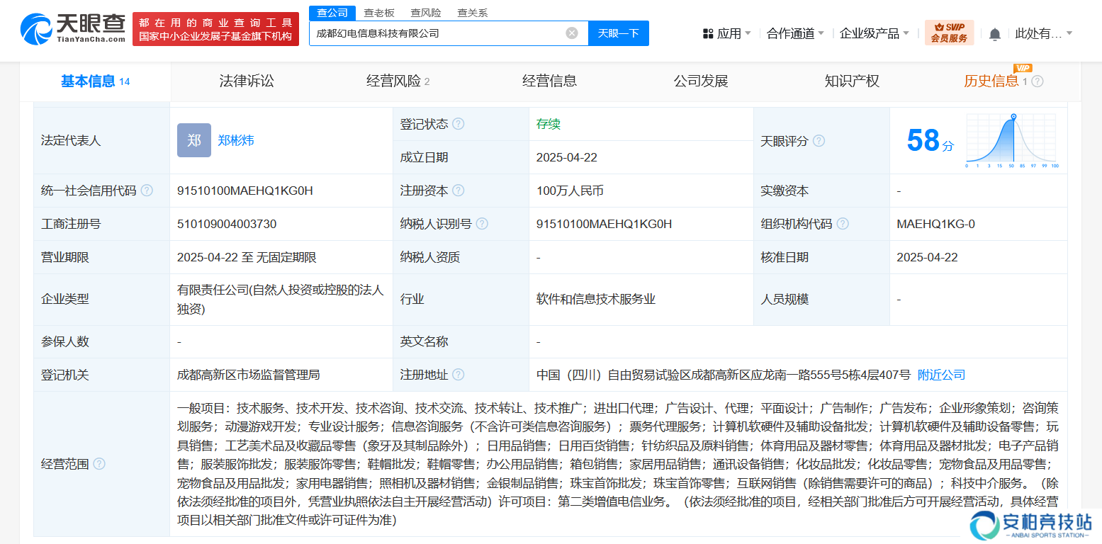 近日,一家名为成都幻电信息科技有限公司的新企业正式宣告成立,这一消息引起了业界的广泛关注。据天眼查信息显示,该公司的法定代表人为郑彬炜,注册资本高达100万元人民币。