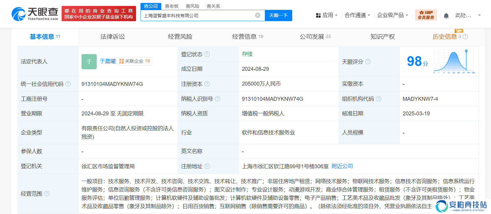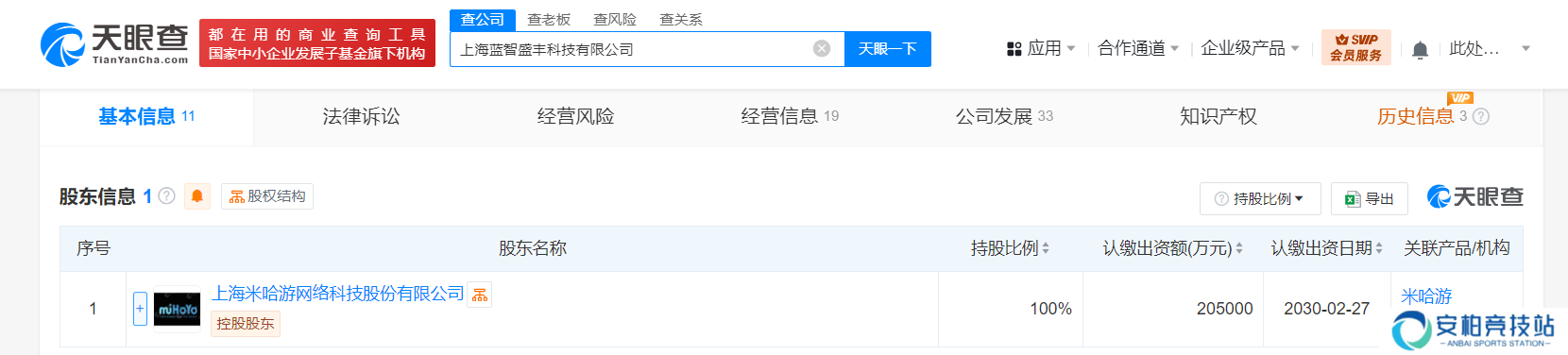 在股权结构上,蓝智盛丰拥有清晰的背景。据天眼查进一步揭示,该公司由上海米哈游网络科技股份有限公司全资控股。米哈游作为业内知名的游戏开发商和运营商,其强大的实力和资源无疑为蓝智盛丰的未来发展提供了坚实的支撑。