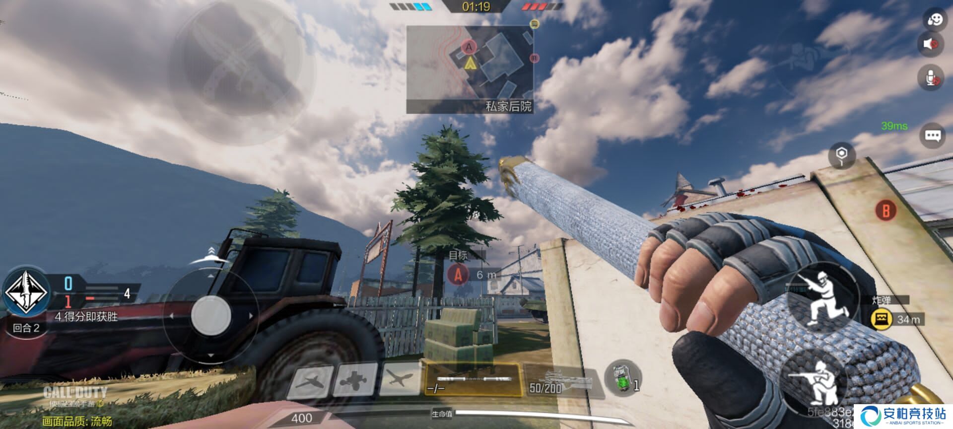 1进攻方草坪左边对准柱子 准心对准路灯 4秒丢出 手雷的落点正好在b包点的蓝车边
