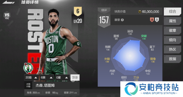 作为卫冕冠军凯尔特人的大当家,塔图姆在队伍中一直有干脏活累活的标签。而在NBA2K手游中这一特点也体现了出来。在游戏中塔图姆拥有优异的外线防守能力与保护防守篮板能力,在防守端可谓无处不在;而进攻端塔图姆不擅长持球,更多的都是接球投射或是内切扣篮,打法简单高效。如果你需要一名防守端干脏活累活,进攻端乐于享受无球进攻的话,不妨考虑一下塔图姆。