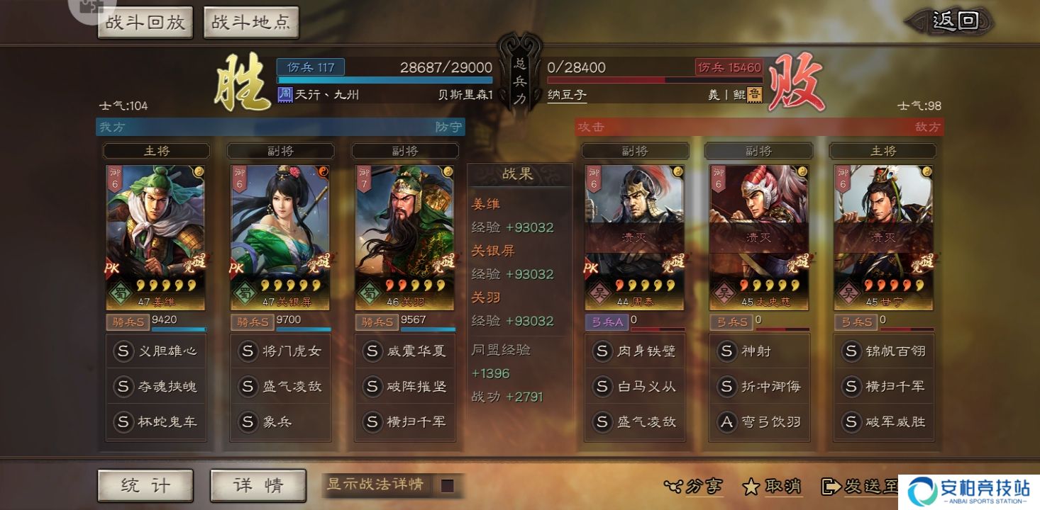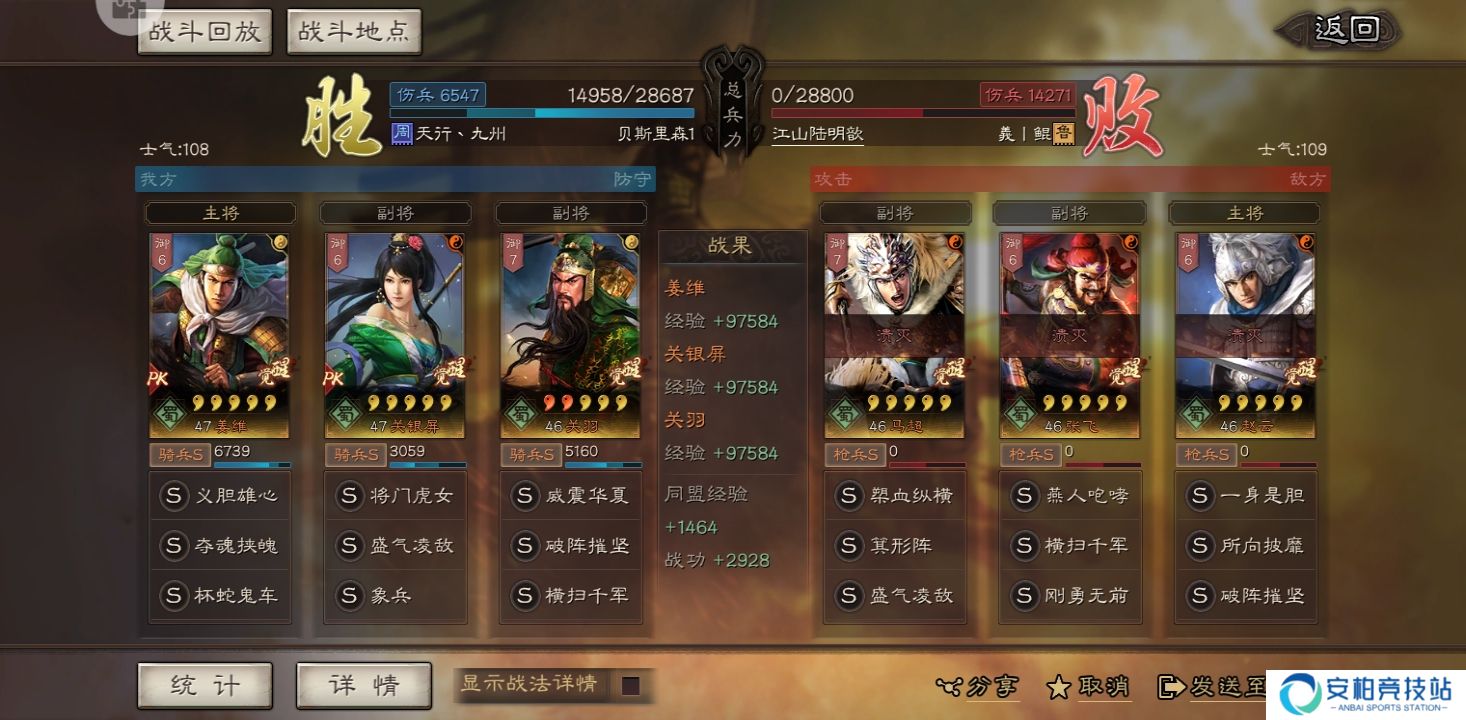 总结:整体来说这个阵容的强度还是都非常高的,打好几个主流队伍基本上战损低甚至接近无损,适合枪兵比较少的版本,如果满大街的吴枪就不建议玩,如果各自爆头队菜刀队比较多的情况下,那么这个阵容会非常好用,或者比较有时间的情况下,可以用来抓菜刀队,基本上满兵可以打好几队!