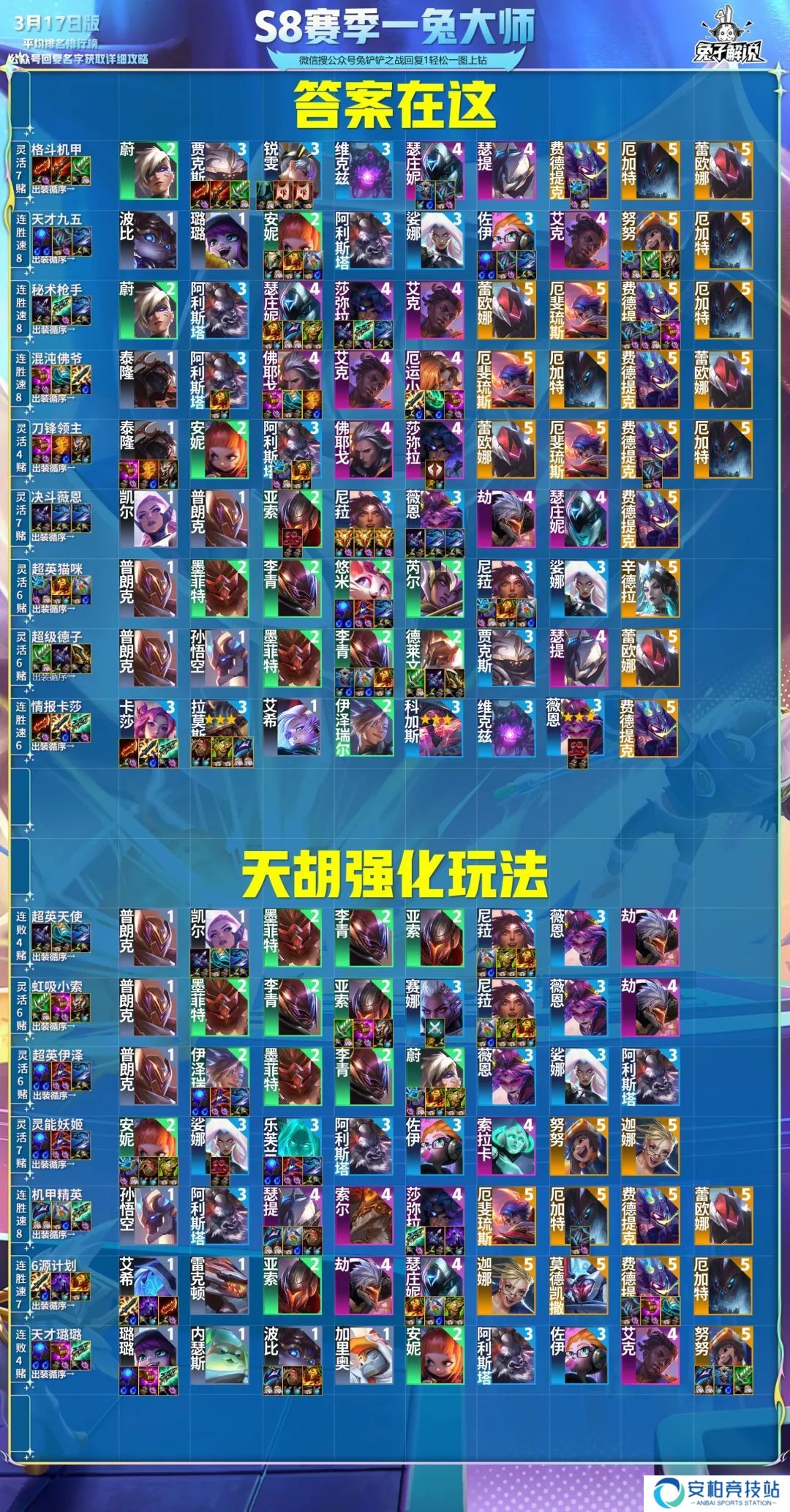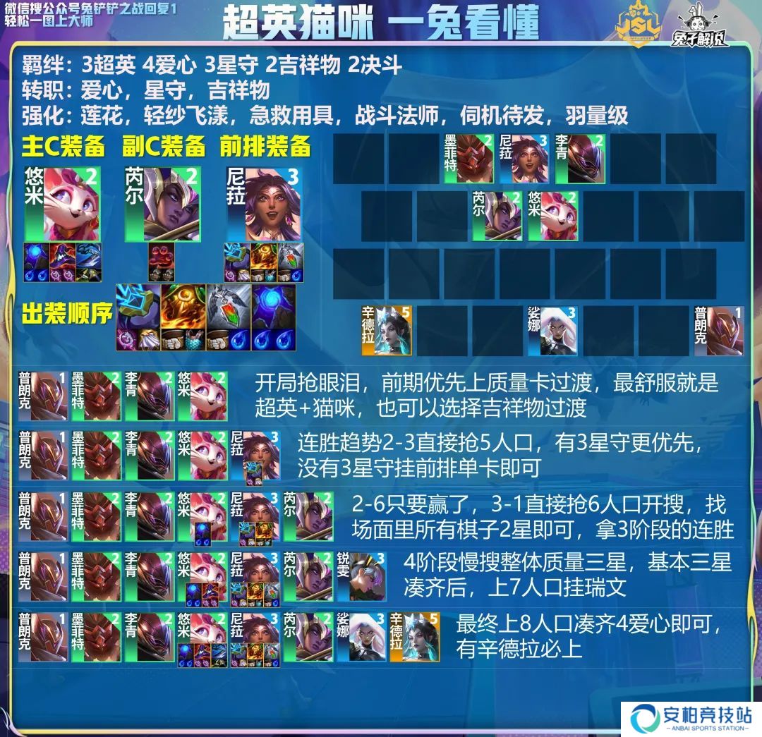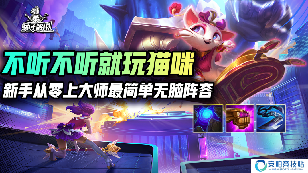 金铲铲之战不听不听就玩猫咪!新手从零上大师最简单无脑阵容!如下: