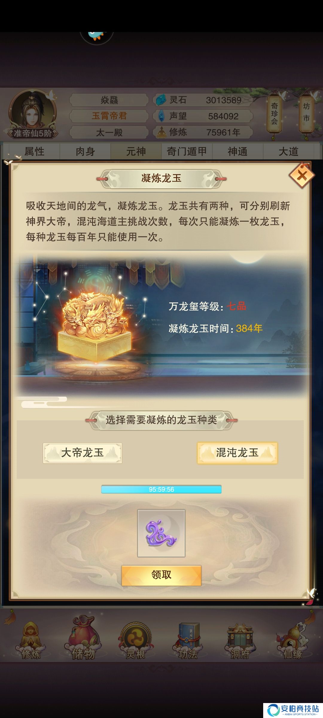 记住龙玉的选择是随时的。在时间没到前任意切换。总时间不变。混沌龙玉对应打混沌海,大帝龙玉打神界大帝