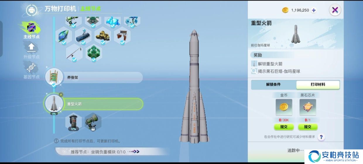 首先必须要解锁打印机的重型火箭节点,提交金币和黑石芯片。解锁后才能在合作社里向火箭提交材料哦。