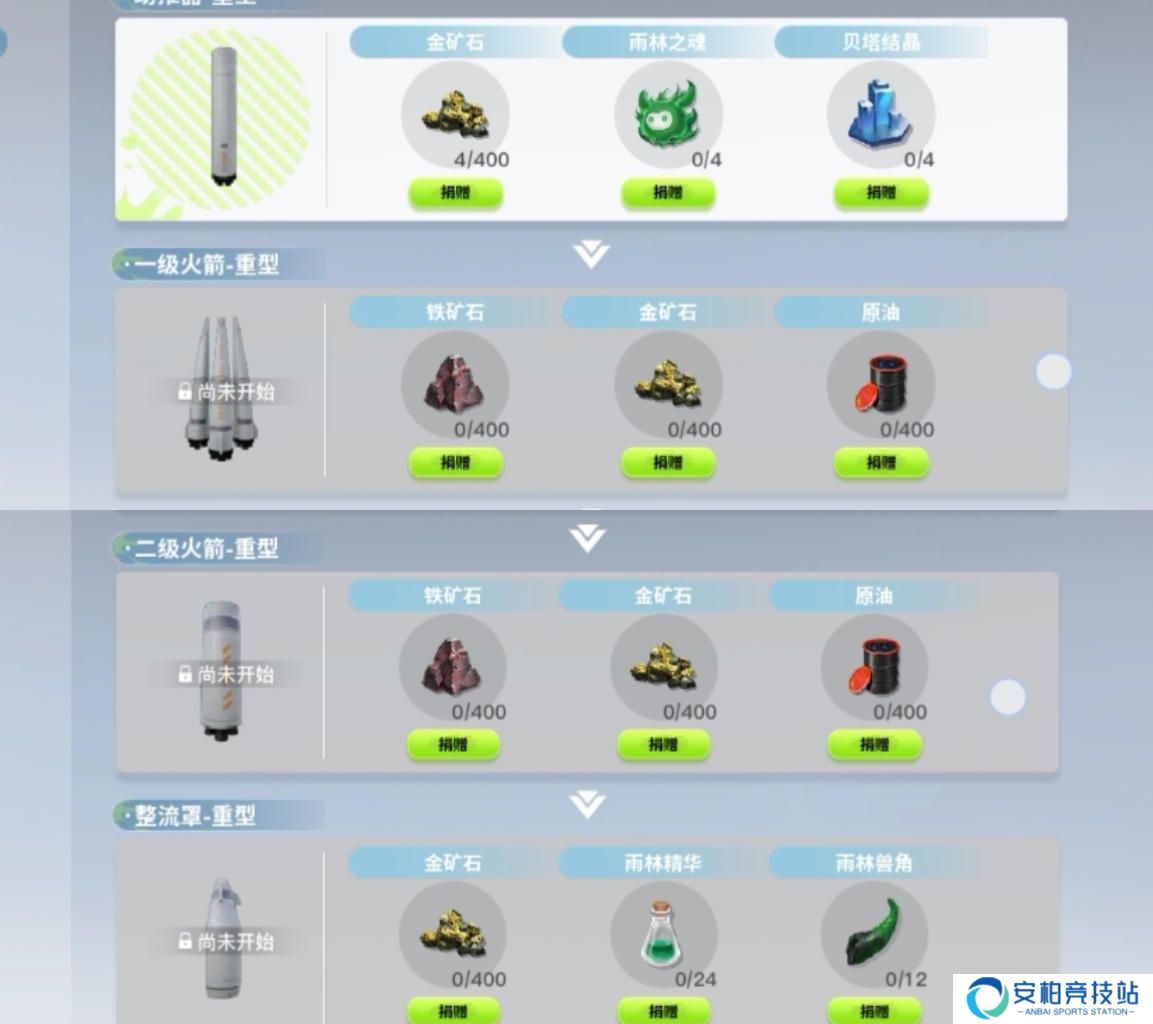 下面是打印重型火箭所需要的材料。共计需要金矿1200,铁矿800,石油800,雨林之魂4个,贝塔结晶4个,雨林精华24个,雨林兽角12个。