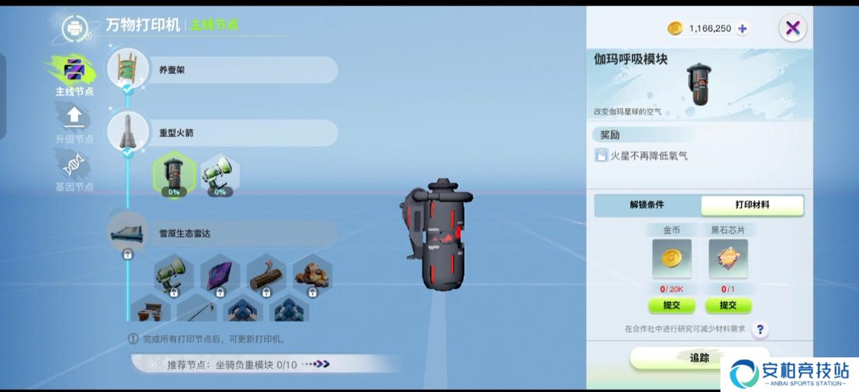 下面的小节点,伽玛的呼吸模块我推荐也一起打印了,打印后可以在伽玛星自主呼吸,不用补充氧气了。需要2万金币,囊中羞涩的小伙伴们也可以暂时缓一缓。