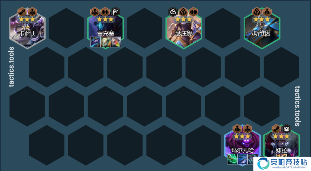 而雷克塞的核心装备都是防御装, 所以不需要去卖血拿装备,因此前期连胜或者连败运营都是可以的,这两者都能够保证阵容的经济最佳,核心在于迅速存够50金币去搜3星雷克塞阵容克制:黑魔枪、VIP火男等魔法阵容。阵容被克制:大成狼人、白魔赛娜等物理阵容。