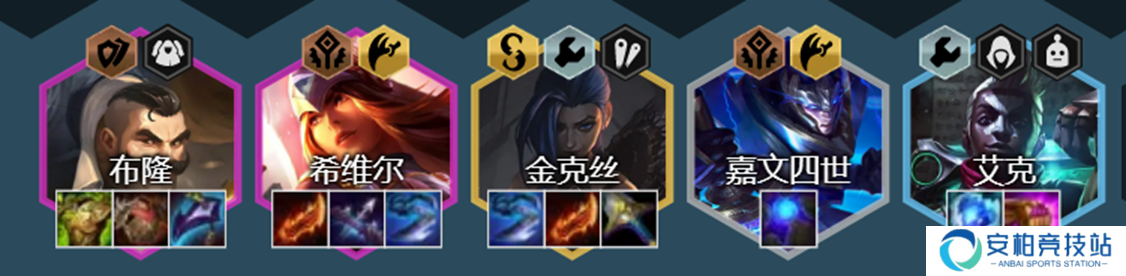 阵容组成:炸弹人、ez、机器人、艾克、刀妹、金克斯、杰斯、维克托、希尔科