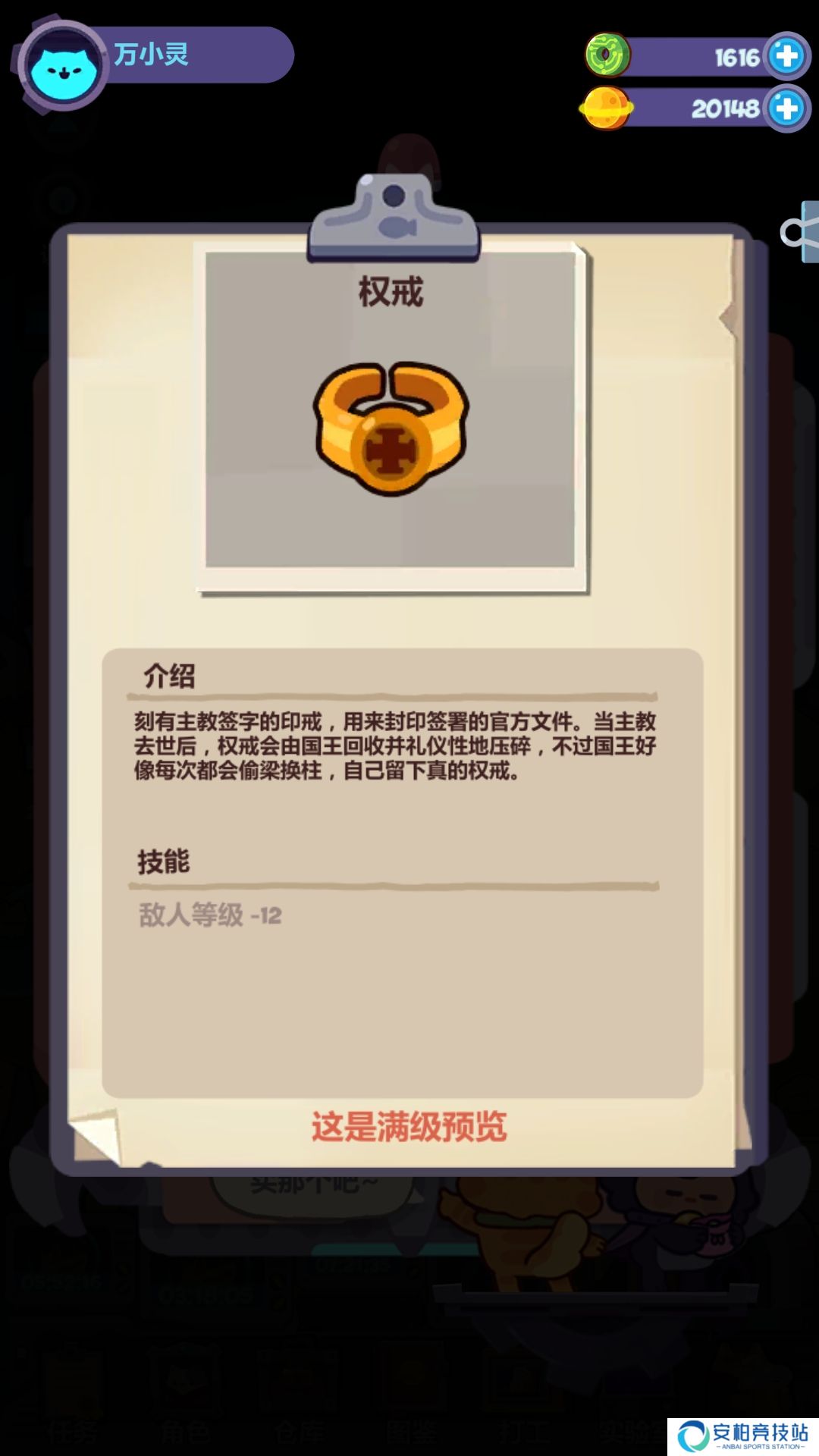 新出的下白棋情缘的最后一个角色白主教上线了,售价68块钱。