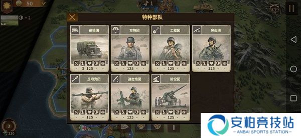 5、可强化为空降兵,空降兵移动后能使用机场二次远距离移动,建议尽量利用机场空降,或强化特种部队克制步兵/装甲。