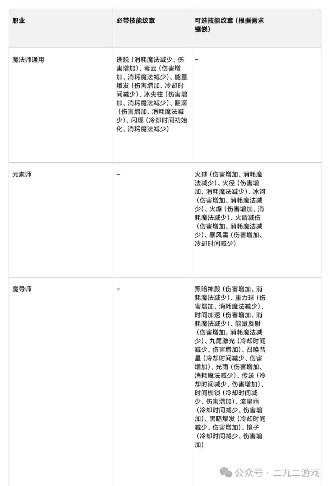 魔法师通用 逃脱(消耗魔法减少、伤害增加)、毒云(伤害增加、消耗魔法减少)、能量爆发(伤害增加、冷却时间减少)、冰尖柱(伤害增加、消耗魔法减少)、翻滚(伤害增加、消耗魔法减少)、闪现(冷却时间初始化、消耗魔法减少) -