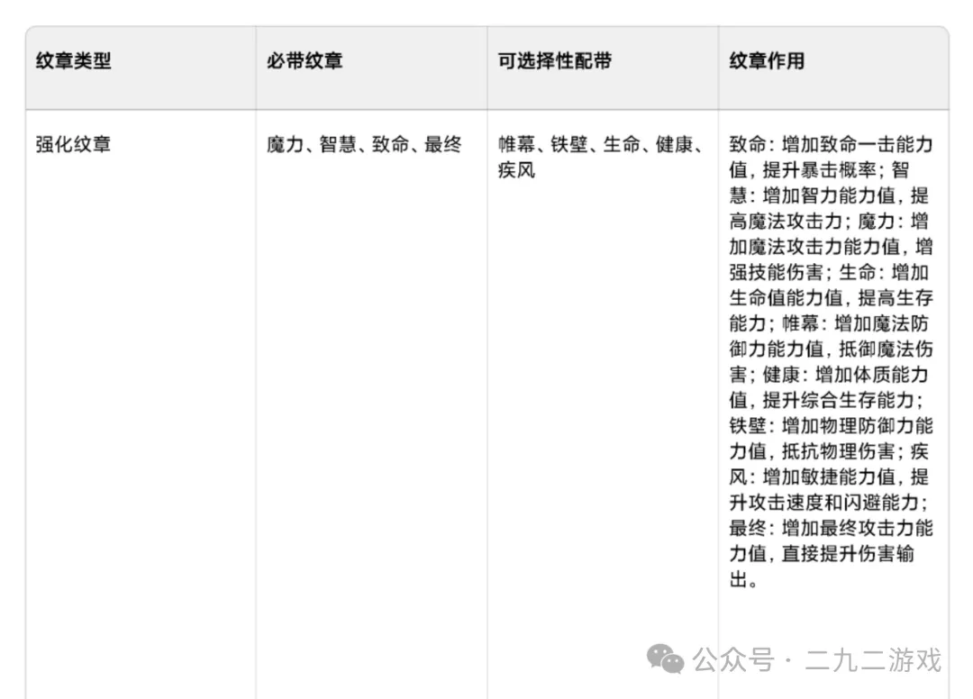 通用纹章搭配为疾风 + 2个三属性纹章(非主流最终)。疾风纹章增加敏捷属性,提升攻击速度和闪避能力,搭配带有最终属性的三属性纹章,进一步提高伤害输出。