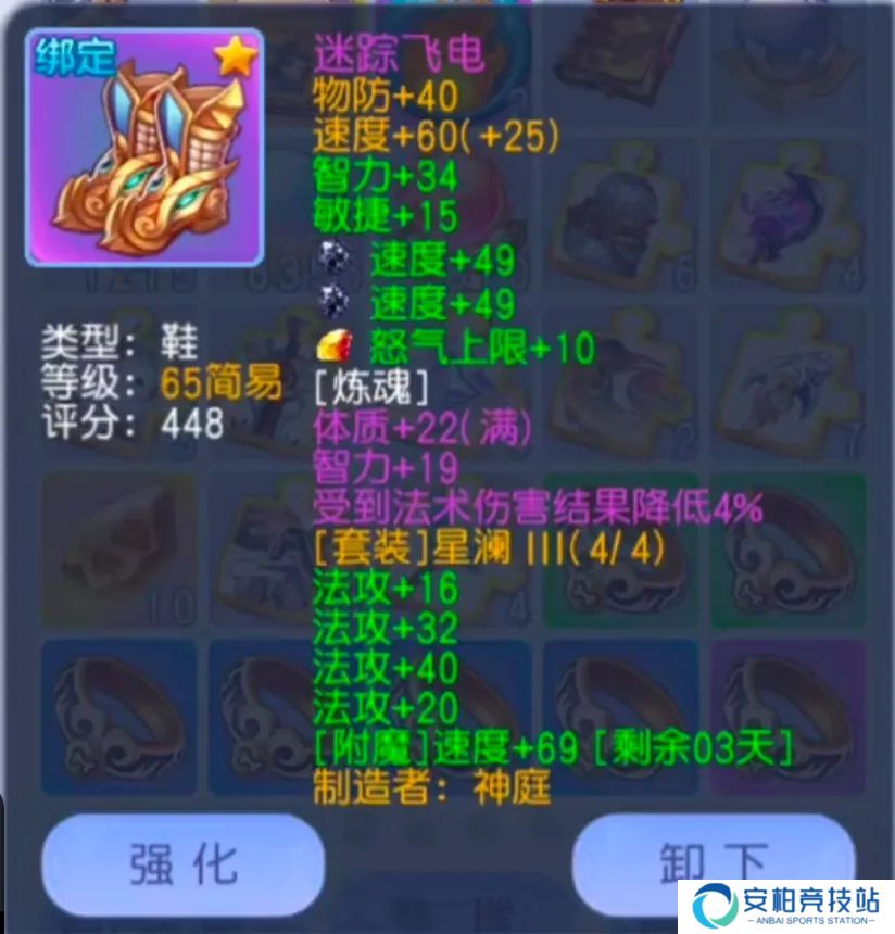 附加属性:附加属性方面我们可以看到是智力和敏捷共计49!相比于三属性这种双属性更能够带来高额的法攻提升!另外一个额外的属性。还能够为人物带来不同功能的增幅!就像这个鞋子智力又高,还能够为人物提供速度!非常的棒,小神装一枚!炼魂属性:炼魂属性方面,体质22,智力19,属性绝对没问题!但是这个特效就很一般了!谁家好人法师用减免法术伤害结果的特效啊!所以说该洗就得洗,当断则断!