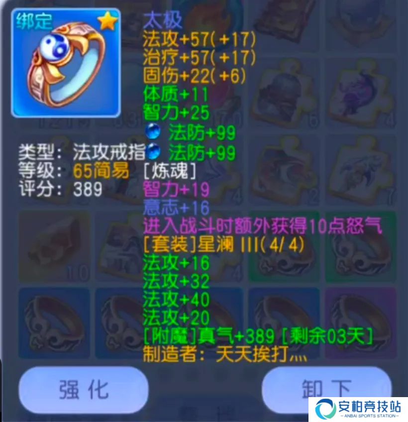 基础属性:戒指建议要尽可能的选择紫色简易!毕竟戒指的基础属性能够带来不俗的伤害加成!这个蓝色的戒指法攻加57在蓝色品质中已经算得上是挺高的一个数据了!