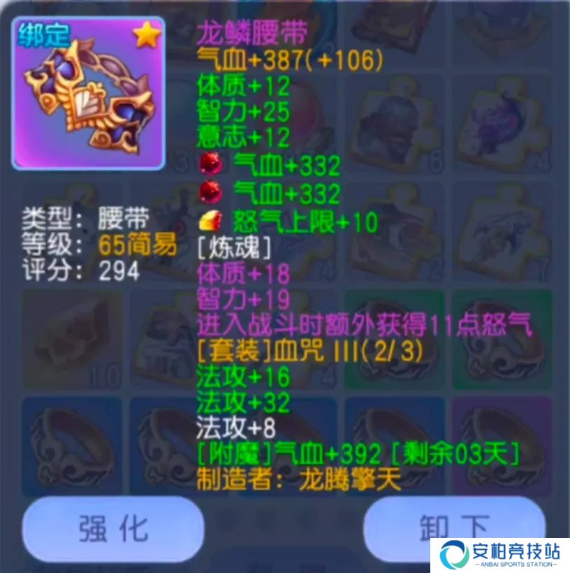 基础属性:众所周知70级腰带的全满气血就是387点!那么我们这件装备直接达到了70级装备的极限属性非常的优秀!