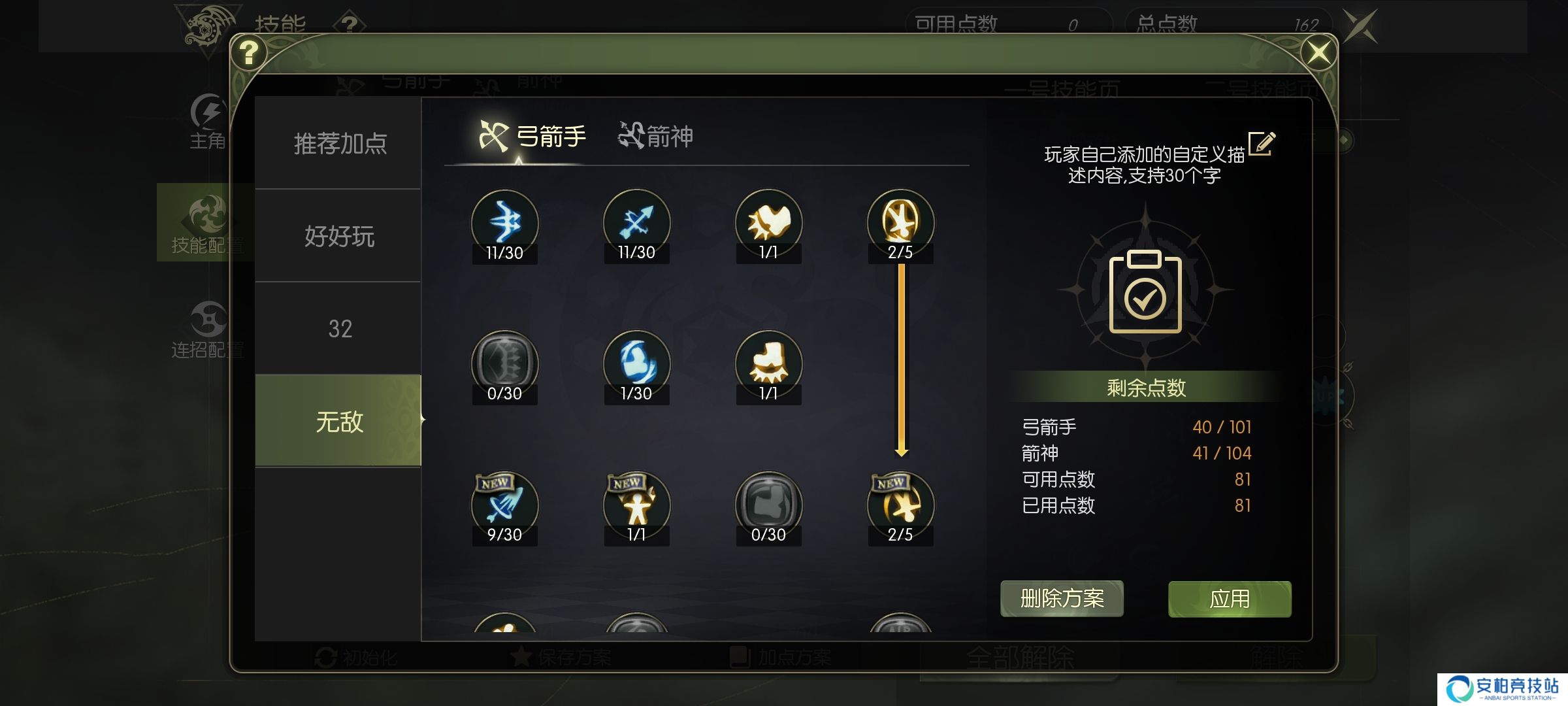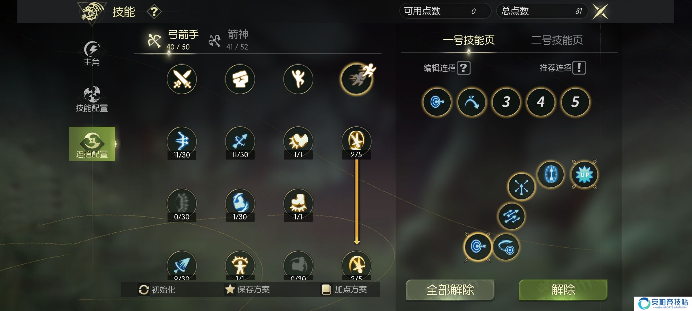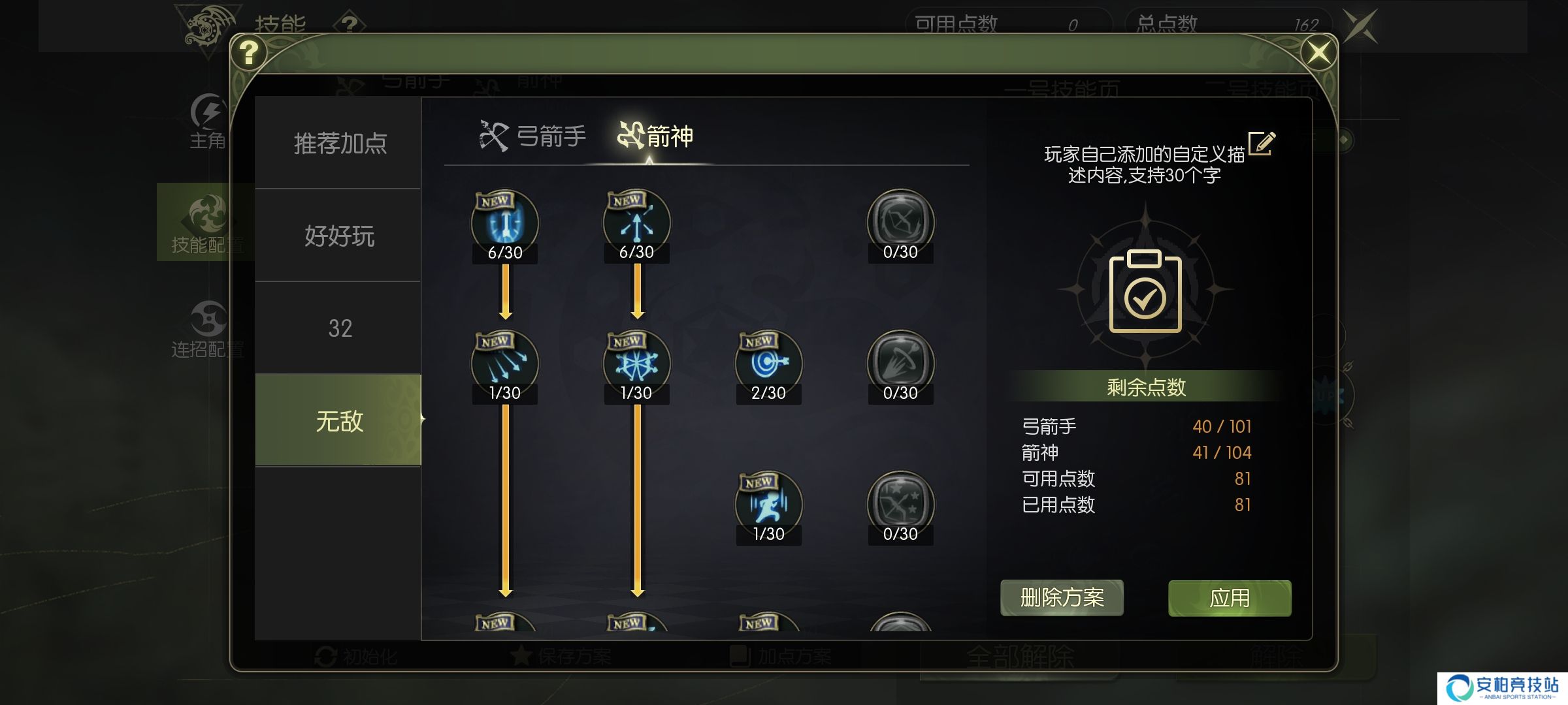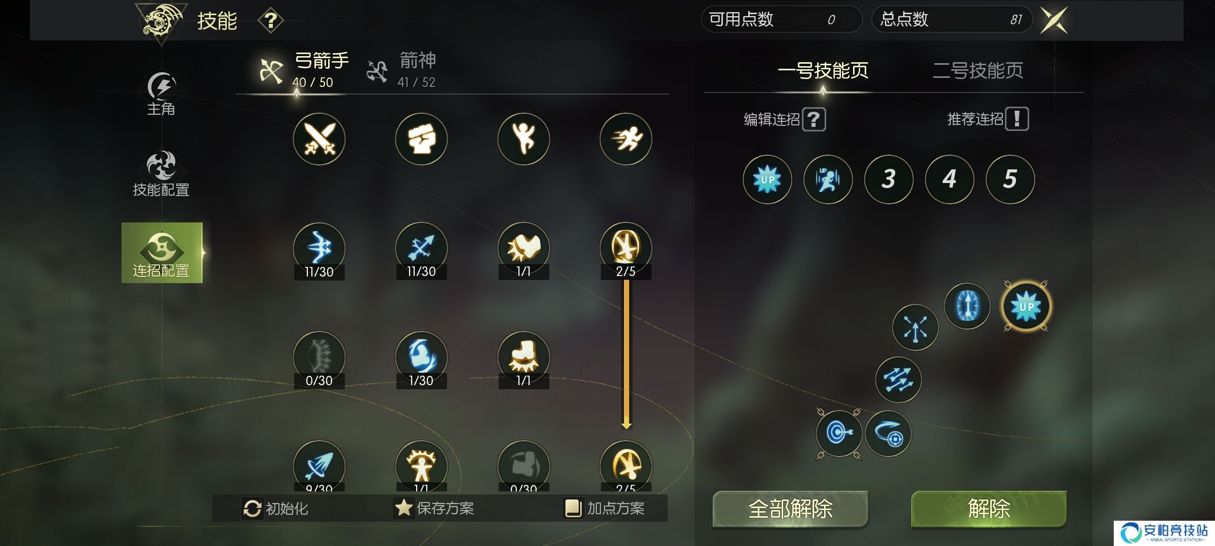 技能加点:我感觉多段射击得贴脸打很难受,远了又射不到,所以舍弃了,还有那个箭神泼水技能也舍弃了。