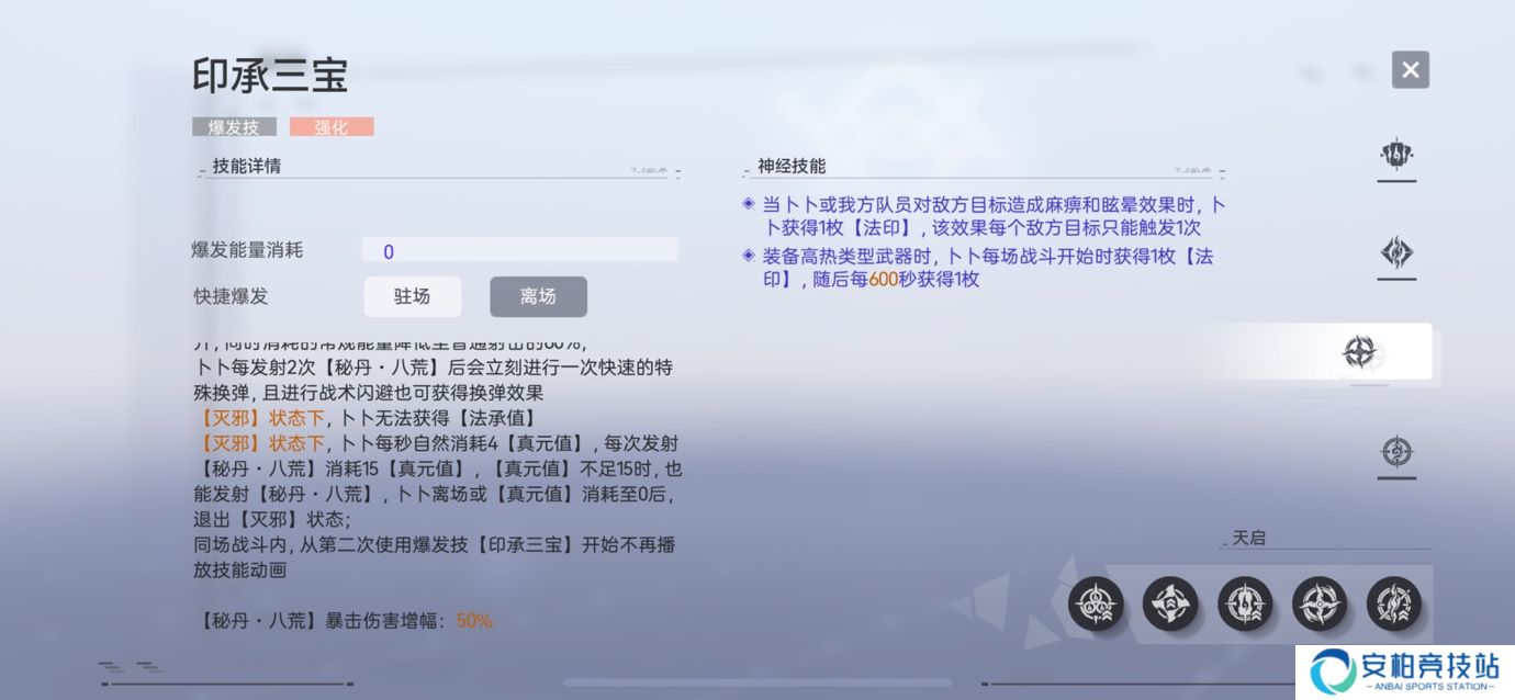 【卜卜·小天师】的角色特性决定了其主要的伤害输出依赖于【秘丹】而非普通射击,因为在战斗初始额的【秘丹·八荒】状态下,【卜卜·小天师】基本可以解决大部份的战斗,并且,即使不能秒杀,在极短的时间内再次开启【秘丹·八荒】。