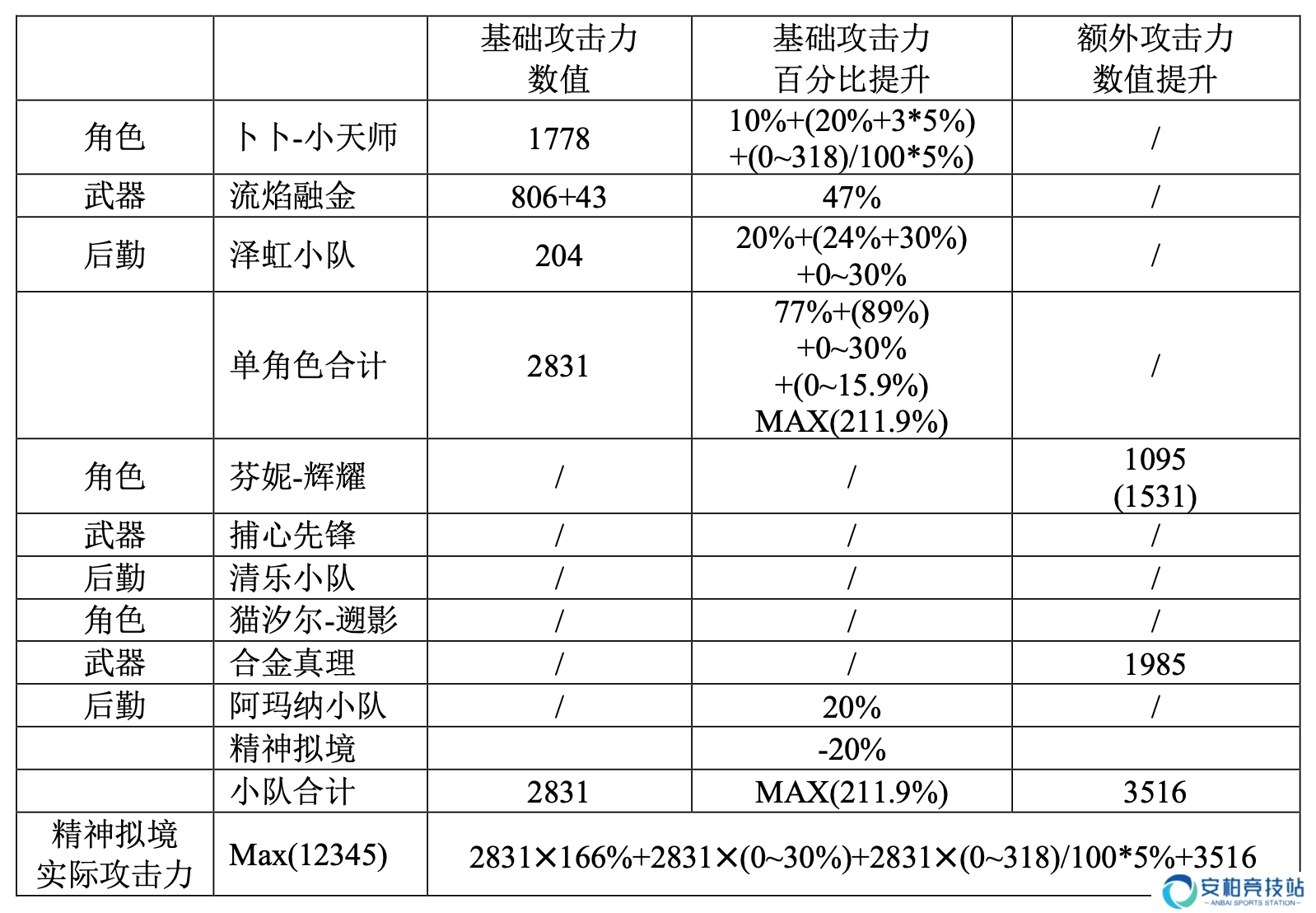输出角色在精神拟境中的攻击力,主要以下3部分包括: