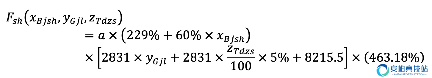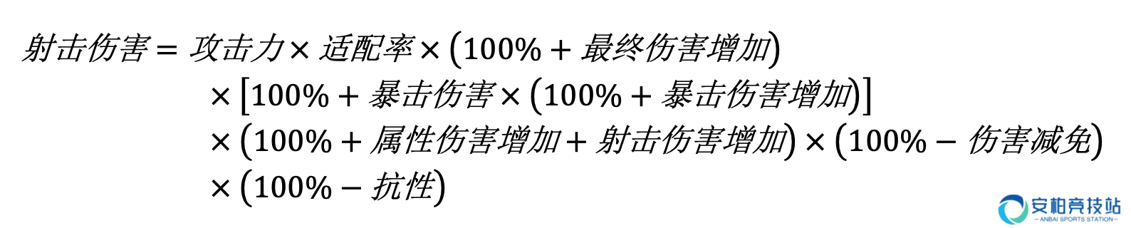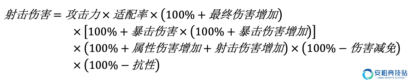 其中,F_sh代表射击伤害,x_Bjsh代表后勤小队暴击伤害增加数值,范围为(0%~31.8%);,y_Gjl代表后勤小队攻击力词条数值,范围为(0%~30%);z_Tdzs代表后勤小队同调指数数值,范围为(0~318),a为常数(精神拟境和辅助相关)。