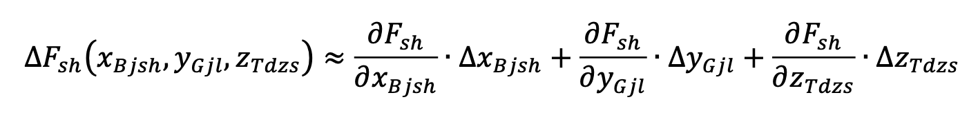所以,在评价x_Bjsh,y_Gjl,z_Tdzs的变化对F_sh (x_Bjsh,y_Gjl,z_Tdzs )影响的时候,则有