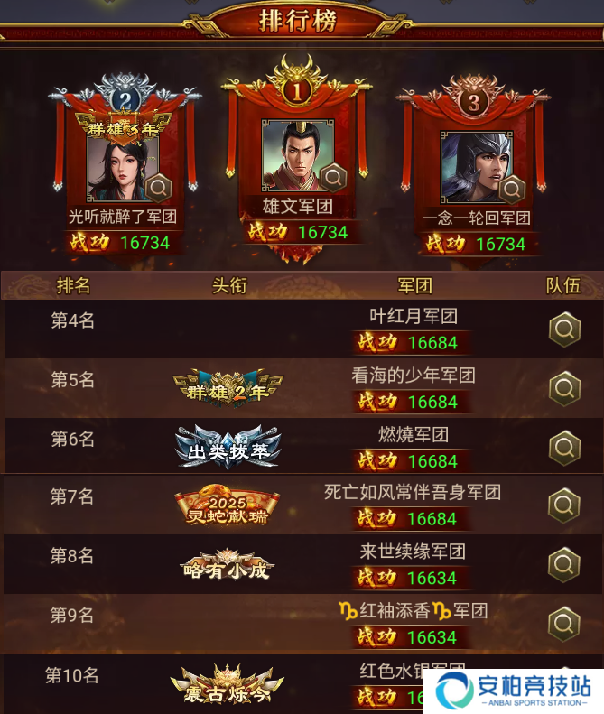 成功荣登本期江夏之战榜首的是 雄文 军团,以 16734 的战功赢得第一的宝座!创下纪录!