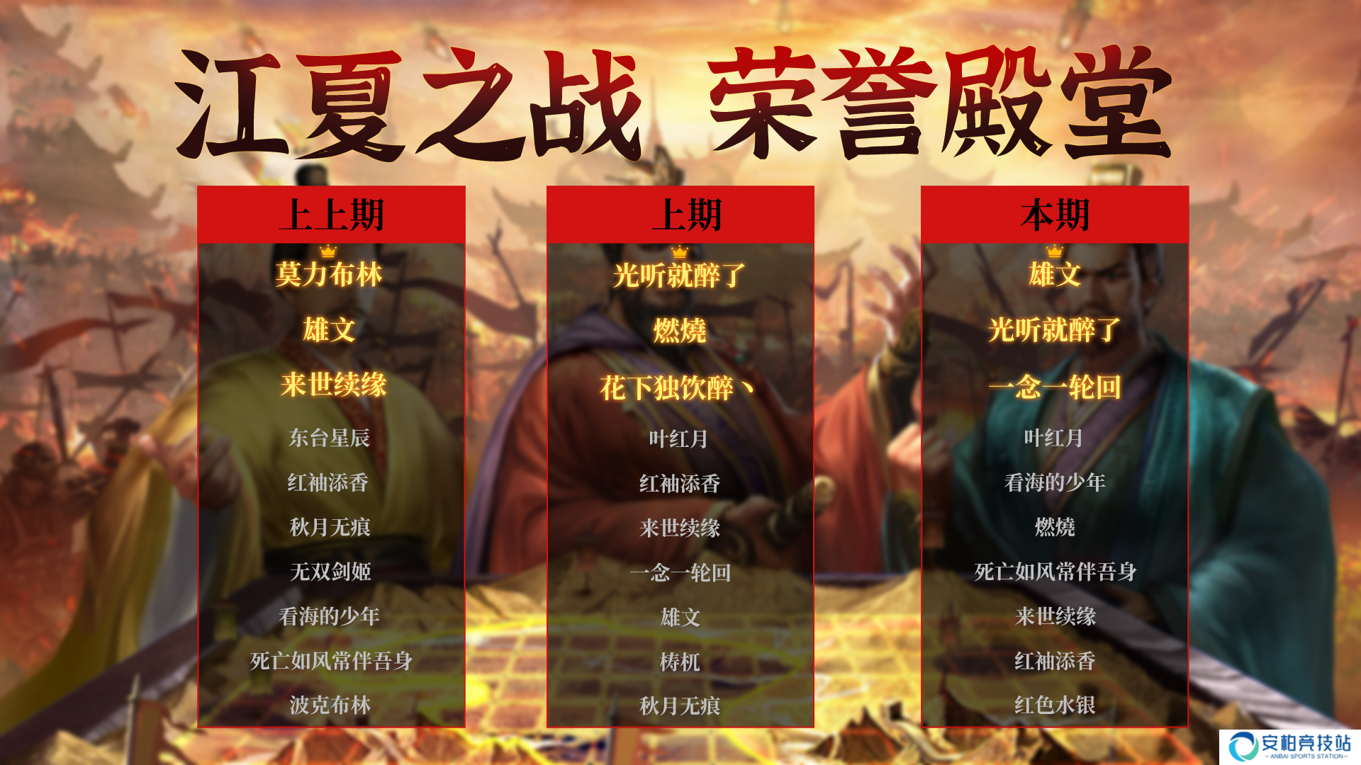 群雄时代荣誉殿堂 | 再创新高!江夏之战 勇士排行榜如下: