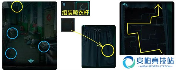 4、组合“木棍”和“晾衣叉”,对悬挂的裤子使用“晾衣杆”,完成小游戏获得“钥匙”。