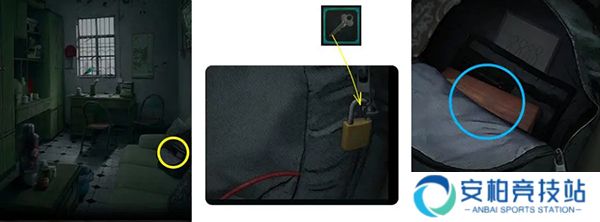 8、用“钥匙”打开401房门,拾取“剪刀”,将“积木”放入门锁机关,完成小游戏,进入卧室。