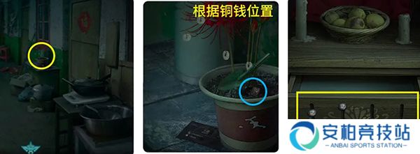 6、用“小铲子”挖开花盆的土,拾取“积木”,根据彼岸花的铜钱位置,打开抽屉获得“八边形木块”,
