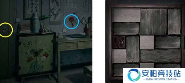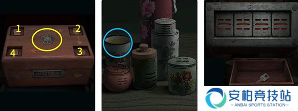 将“八边形木块”放入木盒凹槽,根据木盒上的图案顺序以及茶叶罐上的八卦,打开木盒获得“钥匙”。