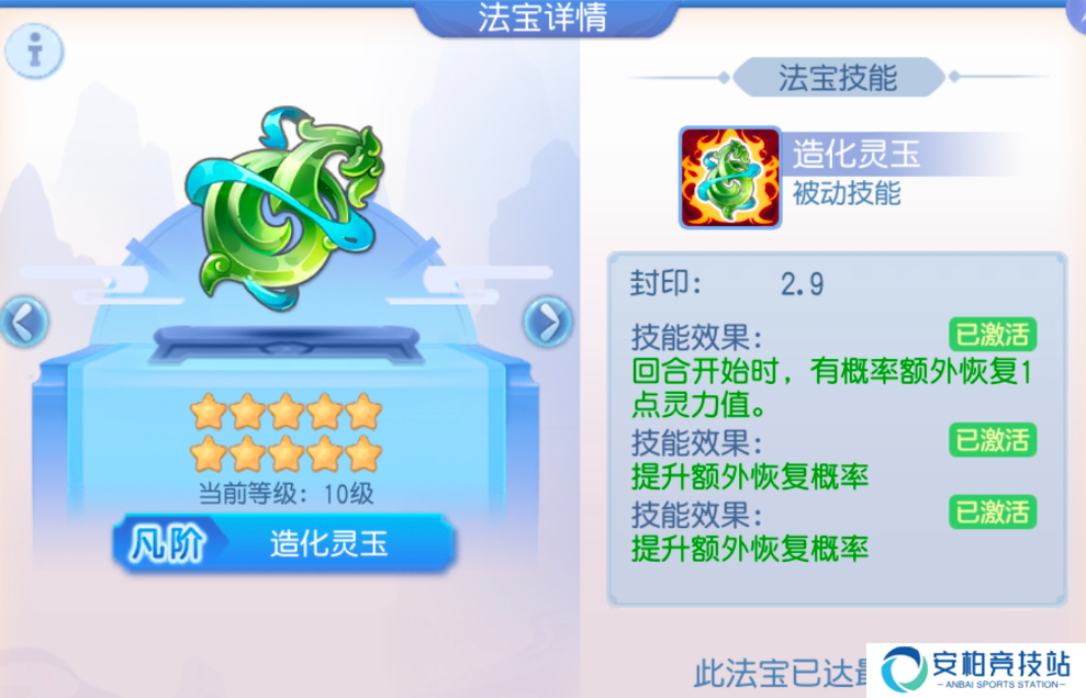 每回合正常可以获得1点灵力,造化灵玉能够让我们每回合概率获得2点灵力!