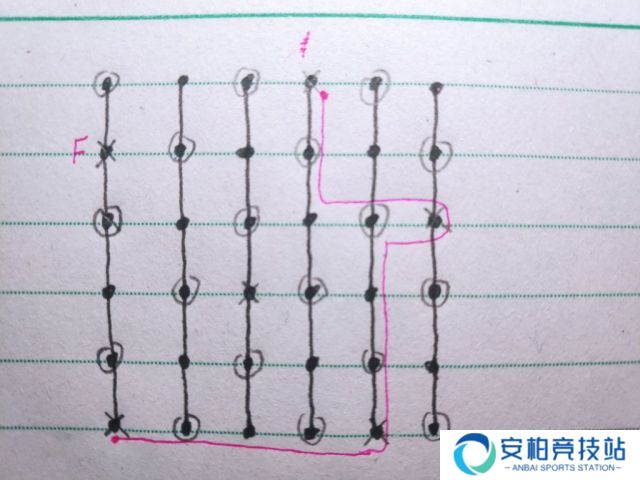 第一回合也是13步,路线跟小蛇蛇一样,但中途要进行一次插秧后换位