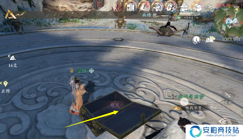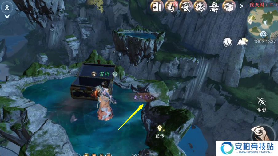 5 前往高空镜天阁坐标(1802.1337)处开启大宝箱获取第一个龟足化石。