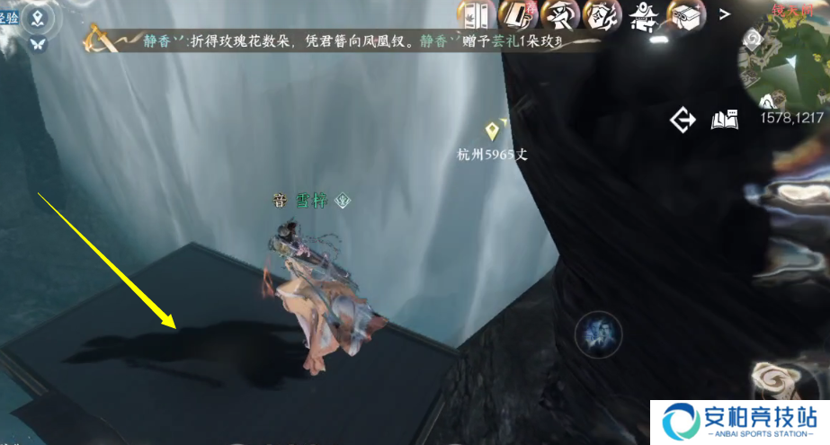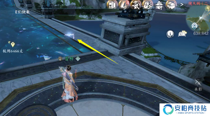3 在坐标(1578.1216)处有个升降台,大家乘坐升降台到最高处,使用苍玉镜魄技能让面前的水流变成虚幻的,快速跳跃到对面的升降台上。