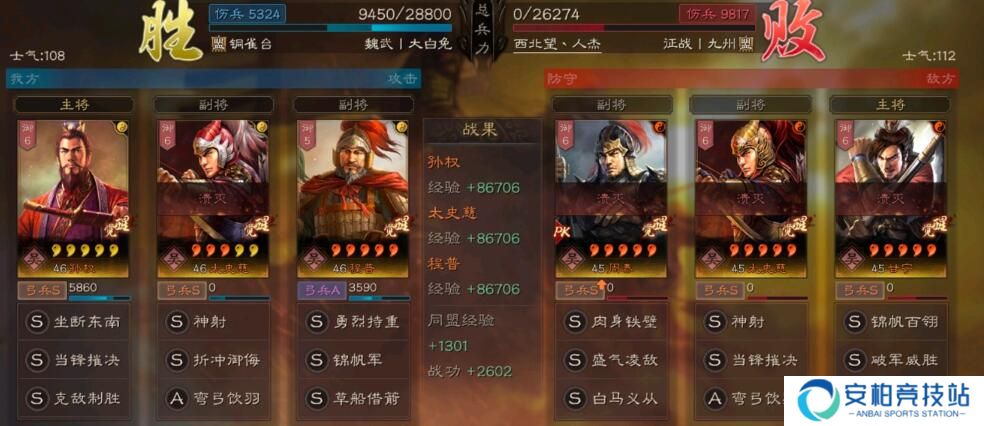 (主将)孙权,战法搭配:当锋摧决+克敌制胜