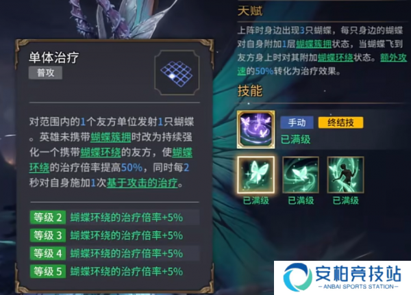 塔露拉的普攻可能看似简单,但却有着不容小觑的效果。她的攻击会对范围内的一名友方发射蝴蝶,这可不是普通的蝴蝶哦!这些蝴蝶会在友方英雄身边围绕,为其提供50%的治疗效果加成,而且每2秒还会给予塔露拉自己一次基于攻击力的治疗,这让她不仅是个强力的辅助,还能为自己持续恢复生命值,保持战场上的持久力。