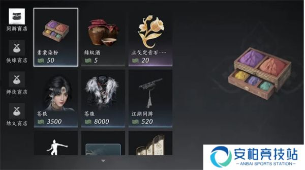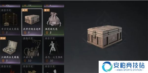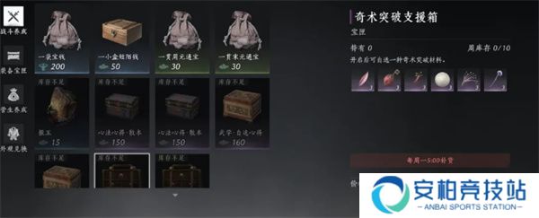 战斗养成店铺:购买心法心得、武学自选心得、奇术突破支援箱、生活物质支援箱等。