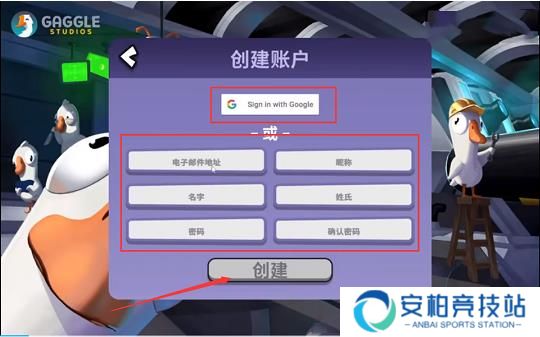 2、选择创建方式:谷歌账号或者电子邮箱,输入信息后点击“创建”。