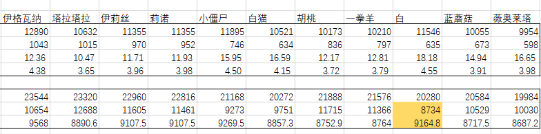 下面是图鉴(满级满星满专属的纯面板)数据