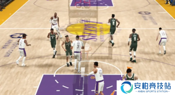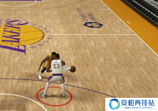 持球单打时我们要选择好单打的位置,通常有2种站法,弧顶以及左右两侧45度位置,这两种能最直观看出两侧空间,然后要合理利用球员的动作包,比方说弧顶位置,乔丹风格的球员横拉加正手爆发,就能快速过人。
