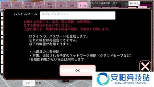 ②输入昵称之后,将会自动创建属于你的登录ID和密码。如果忘记了,就无法重新设置。可以使用以下功能:小道具的共享功能,以及将来要追加的网络功能(云保存等)*长时间不使用的话会删除。