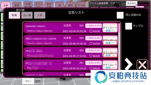 1、关注列表:在这里我们能看到世界各地的樱校玩家上传分享的道具存档,我们可以进行选择下载获得他们的道具存档。列表可以根据“最新发布”“按旧顺序”“人气”方式排序查看各种存档。