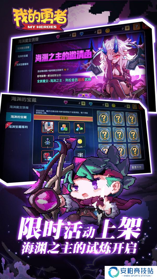 3、现实活动商家,海渊之主的试炼开启,这里有非常精美的像素画面,每一个人物的造型都是非常可爱有趣的哦。