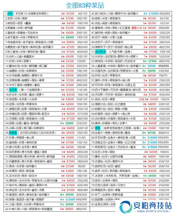 第二全部菜品是78种可合成+5种不可合成一共是83种