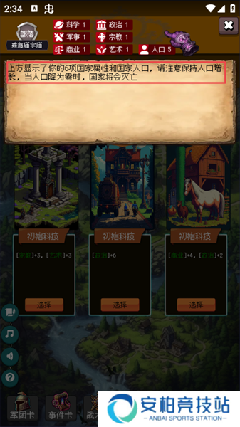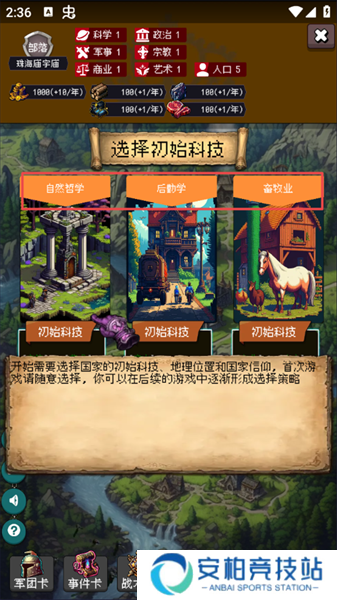 3、去选择自己国家的初始科技,这将会影响你的国家之后的发展。