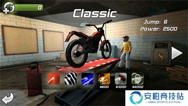 3、游戏允许玩家驾驶不同的自行车,在赛道上表演不同的特技获得高分。
