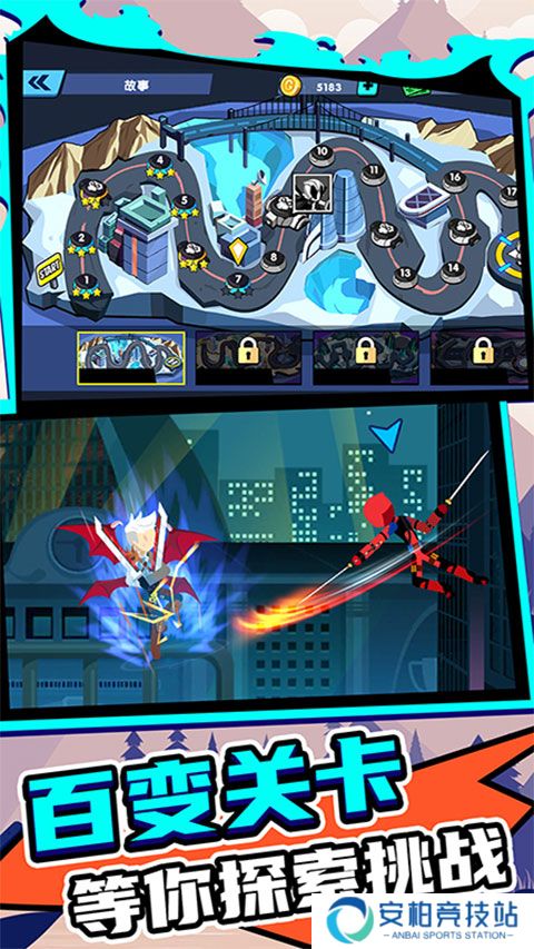 游戏简介:玩家控制火柴人角色加入挑战,在各种场景中进行激烈的战斗。精美的画面、简单易用的操控、丰富的关卡,还有多种不同的战斗模式,让玩家享受刺激的战斗体验。