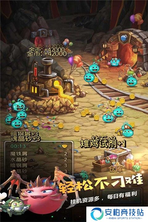 3.基地建设经营:打造炼金坊、神器洞窟等,派遣冈布奥探索宝物,即便离线,工匠也会积累资源 。