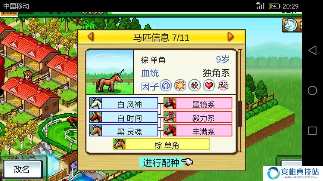 1、这时应该能获得一些较好的马种了,用开局的白马配这些马种,配出两只参赛马。建议隔两岁,可以每年不间断得参加三冠比赛。赢得三冠比赛后应该就不差钱了,这时可以尽情地扩建了。